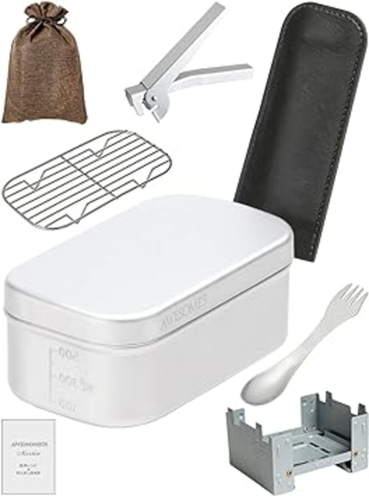 ・AWESOME'S メスティンには、蒸し料理に使えるようにメッシュバット(バッド)あみやしゃもじのかわりにナイフ、フォーク、スプーンが一つにまとまった三徳スプーンがセットになっているので、飯盒炊飯での調理が楽に。リフター付きなので蓋がフライパンとしても使えます。ハンドルカバーもセットで完璧です。