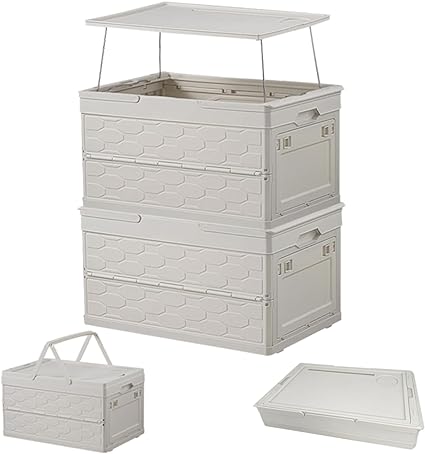 gofurry 収納ボックス 折り畳み キャンプ コンテナ 蓋付き 56L(2個)キャンプテーブル 3方向から取り出せる 大容量 多機能 組