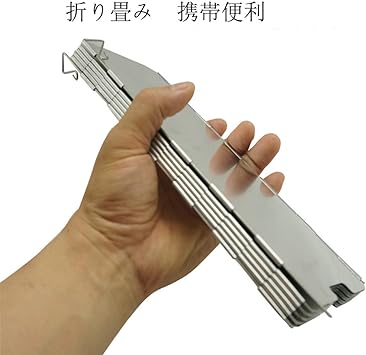 ・素材:アルミニウム、ステンレス。アルミニウム合金材料で、軽量、耐摩耗性と耐久性に優れています。または折りたためる小型・軽量で登山用品/キャンプ用品として便利なサイズです。