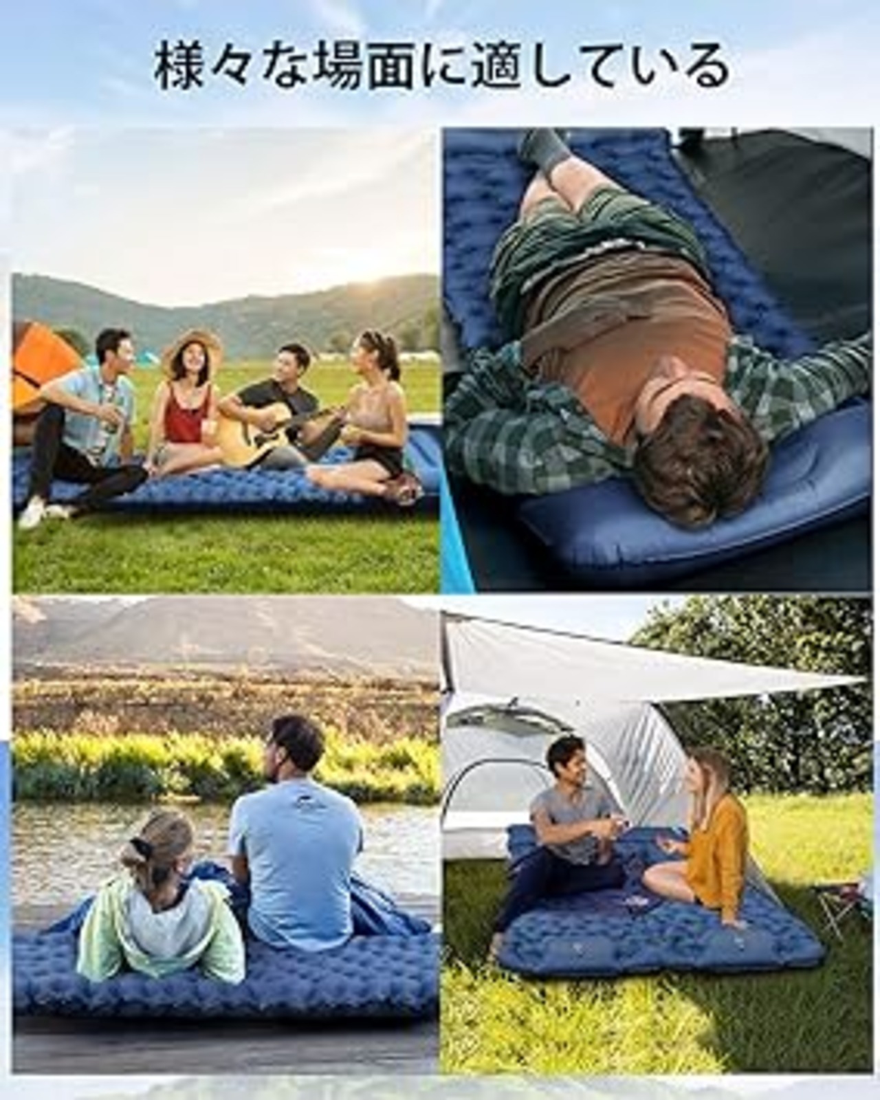 ・【市場とは異なる堅牢な素材】エアマットの裏側はポリエステルで、太い枝を使って強く切っても破れにくい素材です。エアマットレスの正面は頑丈な40Dナイロン素材+多層防水で耐久性のあるTPU素材、高い強度と防水性を持って、雨でもタオルでちょっと拭くだけ座れます。アウトドアマット、キャンプマット、テントマットなど、さまざまな用途に使用されます。キャンプ、登山、キャンプ、オフィス、宿泊に使用できます。地震や災害が発生した場合の防災グッズとしてもおすすめです。
