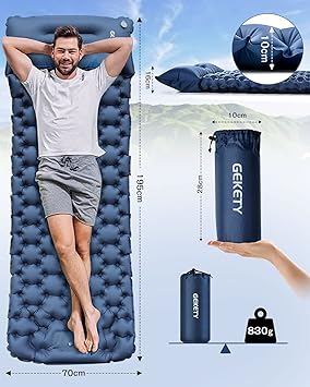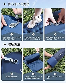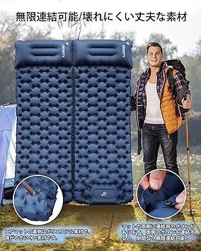 エアーマット GEKETY 【約10CM厚さ】 キャンプ マット 車中泊マット 足踏み式 無限連結可能 枕付き エアマット キャンプ 災害マ