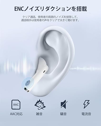 ・最新のBluetooth 5.3と高忠実な音質:技適マーク認証済み商品(周波数帯:2.40〜2.48GHz)。当社のワイヤレスイヤホンは先進的なBluetooth 5.3技術とアンテナ技術を採用し、15mのBluetooth範囲で高速かつ安定した伝送を提供します。内蔵の高音質オーディオチップが音楽の細部まで捉え、鮮明な高音と適度な低音のある豊かなサウンドを実現します。ENC通話ノイズキャンセリング技術により、周囲の騒音やエコーを低減し、クリアなBluetoothイヤホンHi-Fiサウンドを実現します。