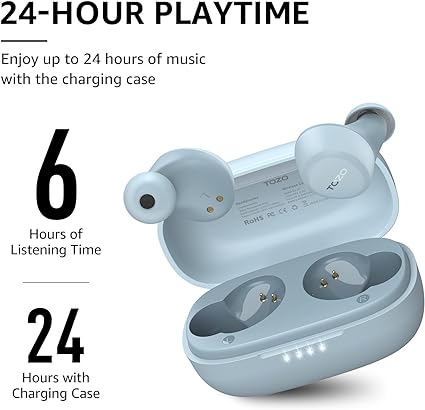 ・【超軽量&人間工学デザイン】TOZO A1イヤホンの表面と角度を何度も磨き上げ、美しさと快適さのバランスを実現し、快適な装着感を実現します。片耳のイヤホンの重さはわずか3.7gで、羽毛のように軽く、耳元で目立ちません。人間工学に基づいたデザインは、特にスポーツ、ワークアウト、ジムなどで耳からはみ出さない快適で確実なフィット感を提供します。特に小さい耳の穴にもフィットしやすいイヤホンです。