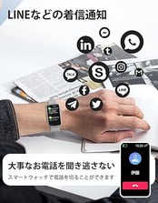 ・「着信通知機能付き」着信通知機能をサポートしています。電話がかかってきた場合、名前を確認することができ、必要に応じて電話を切断することができます(通話機能はありません)。また、Line、Facebook、Messager、Twitter、Whatsapp、Skype、Linkedin、Instagram、Viber、Gmailなど、多彩なメッセージアプリの通知をサポートしています。手元のスマートウォッチで通知を確認することで、いつでも大切な情報を手軽に確認できます。例えば、会議中や授業中、スマートフォンを取り出すことができなくても、手元のスマートウォッチでメッセージ通知を確認することができます。