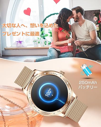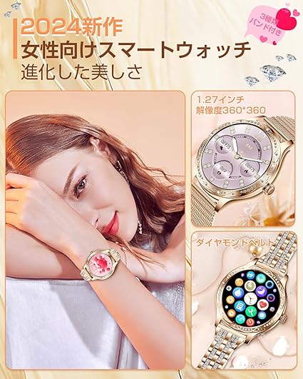 スマートウォッチ 絶妙なダイヤモンドデザイン 女性に向け 母の日 敬老の日 プレゼント Smart watch レディース 1.27インチ