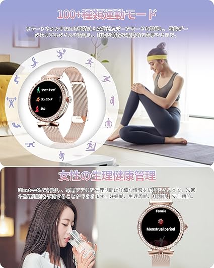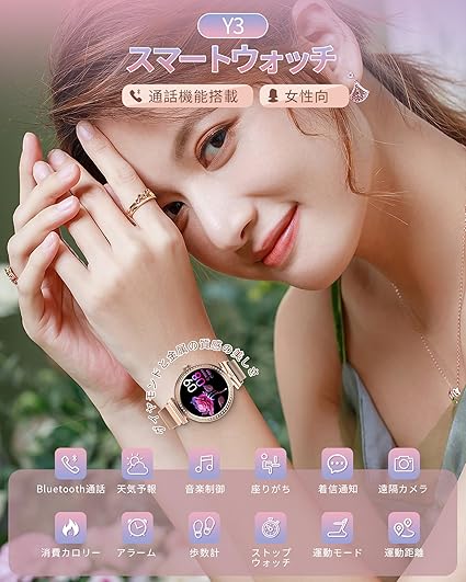 スマートウォッチ Bluetooth通話付き 円形画面 歩数計 活動量計 スマートブレスレット レディース 腕時計 Bluetooth 5.