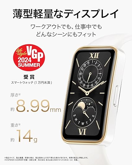 ・【圧倒的な快適さ】新たにバンド部に肌に優しいフルオロエラストマー素材を採用:重さ約 14g、厚さ約 8.99mmと非常に薄型軽量なバンドは、ワークアウトでも、仕事中でも、ただ歩いているだけでも、どんなシーンにもフィットします。