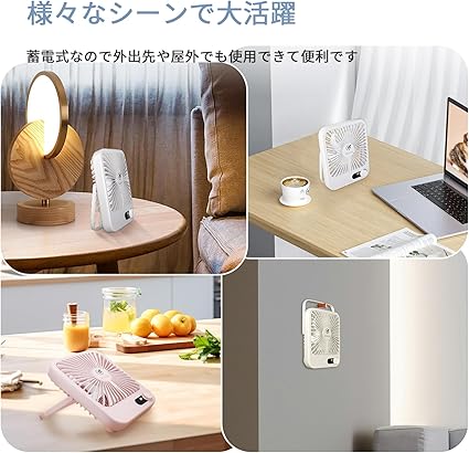 ・【卓上扇風機&吊下げ&180°超広角】この充電式扇風機はテーブルの上に置いたり、壁に掛けたりすることができます。180°の超広角で自由に変形、折り畳みが可能です。多目的なデザインで、さまざまな場面でのニーズに応える扇風機となっており、より便利な使用が実現されています。本体の台座には滑り止めがあり、卓上式として安定して使えます。