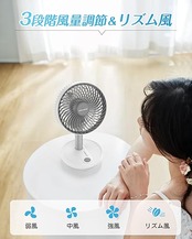 ・【超静音dcモーター&65°自動首振り&上下角度調節】: 卓上扇風機は3枚の羽根で強力な風量を確保しつつ、回転音が気にならない超静音設計です。睡眠中や作業中でも音が気にならず、生活の妨げになりません。左右に65°自動首振り機能を搭載し、広い範囲に風を送ることができます。また、手動で上方向に35°、下方向に5°まで角度を調節できます。自由にお好みの風向きに設定できます。