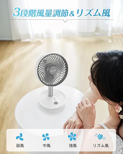 Keynice 静音卓上扇風機 | 首振り&角度調整 | 4000mAh USB充電式 | リズム風&3段階風量 | 長時間稼働 | 省エネ
