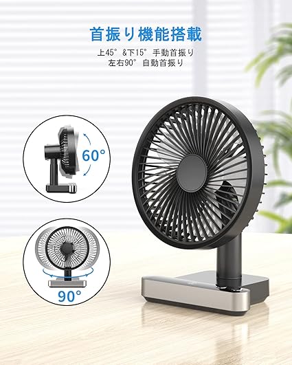 ・【7200mAh大容量バッテリー&25H連続使用】:卓上扇風機は7200mAhのバッテリーを内蔵して、フル充電で微風モードで約25時間連続ご利用頂けます。扇風機の背面にはUSBポートを装備し、様々な充電対応でき、付属のUSBケーブルでパソコン、ソケット、モバイルバッテリー等に連続してお手軽に充電できます。5 V/1 A充電仕様で、約7Hフル充電します。充電式なので屋外でも使え、キャンプに行くときにも持ち運べます。