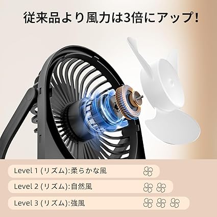 ・【180°角度調整可能】 ファンヘッドの向きを最大180°まで上下に傾けることができます。 ハンドルを押さえたまま、ファン部分をスライドさせるだけで簡単に調整が可能です。 携帯性を重視する小型デザイン、外出する時、バッグまたはポケットの中に入れても負担はありません。