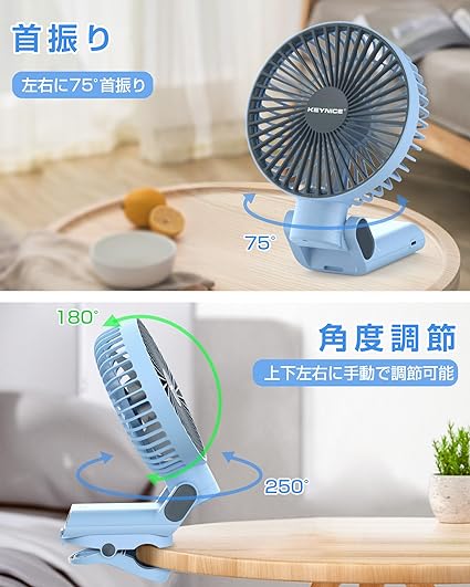 ・【多用途に対応するコンパクト扇風機】 Keyniceの最新モデルKN-175は、充電式でコードレスのため、家庭、オフィス、アウトドア、車内など様々なシーンで活躍します。コンパクトサイズで、クリップ式デザインにより多彩な場所に取り付け可能です。機能性と実用性を兼ね備えた扇風機です。