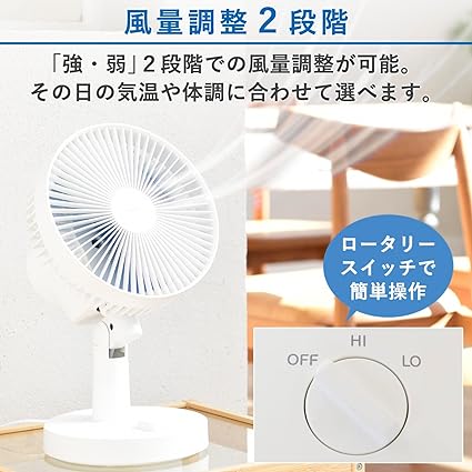 ・操作方法:ロータリースイッチ式、風量調節:2段階(LOW/HIGH)