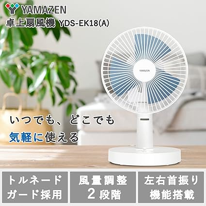 [山善] 扇風機 18cm 卓上 小型 左右首振り 風量2段階調節 ロータリースイッチ ブルー YDS-EK18(A)