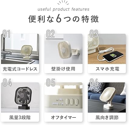 コードレスなので部屋間の持ち運びにも便利で、台座についているマグネットでキッチンの換気扇に取り付けたり、冷蔵庫やスチールラックに取り付けて壁掛け扇風機のように使うことも可能です。