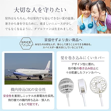 両手が使える ハンズフリー 首掛け扇風機 WFan ダブルファン ヨガシロッコ サンドベージュ SPICE OF LIFE(スパイス) 静音