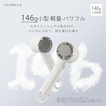 ・【超軽量&超静音】このミニ扇風機は重さがたったの146gです!超軽量で持ち運びにも非常優れているため、長時間手持ち使用しても手に負担を感じません。さらに、最大風量でも、ファンの音は非常に小さいです。電車等の室内で使用しても他人を気にせず、夏の暑さを軽減することができます。