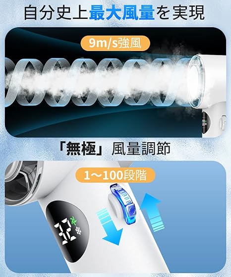 ・【LEDデジタルディスプレイ搭載】この 手持ち扇風機 は、LEDデジタルディスプレイを搭載しており、バッテリー残量や1-100の段階風量調整を一目で確認できます。直感的に操作ができるため、使いやすさが向上します。特に外出先や旅行先でのバッテリー管理が簡単になり、いつでも安心して使用できます。