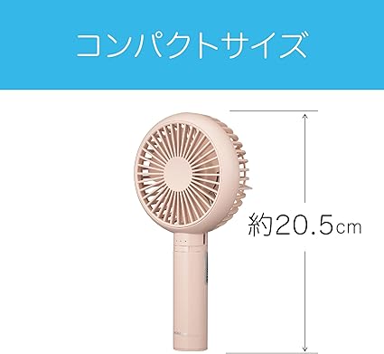 ・持ち運びしやすいコンパクトサイズ。スタンド付きでミニ卓上扇風機としても使用できます。