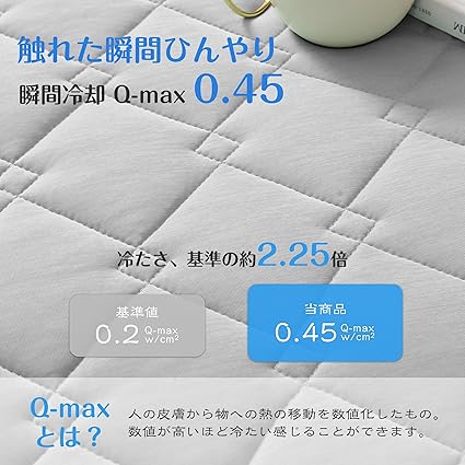 ・【Q-MAX0.45!ひんやり感抜群】レーヨンは、天然原料由来の再生繊維です。優れた通気性・吸湿性が特徴で、この製品には、冷感面となる表側の生地に50%のレーヨンを使用して、湿気がたまりづらい構造となっています。寝返りなどで移動するたびに、体が接していない部分が放熱して温度が下がるので、朝まで心地よいひんやり感が持続します。更にエアコンと併用すれば、より冷たく感じます。