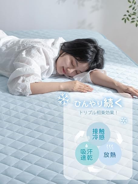 ・【取り外しや洗濯が簡単】ゴムバンドが付いているので、敷布団にもマットレスにも対応し、取り付けが非常に簡単です。汚れたらすぐに洗濯でき、風通しの良い場所で陰干しすれば、わずか30分で乾きます。夏場の洗濯と乾燥は気軽に行えます!