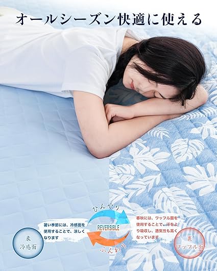 ・【リバーシブル敷きパッド通年使用】裏面は弊社独自開発デザイン、両面仕様で、一年中ご利用いただけます。一般的な無地の敷きパッドとは異なり、裏面に凝った花柄を使用するだけでなく、ワッフル生地を使用することで、春と秋で異なる寝心地を体感できるようになっています。