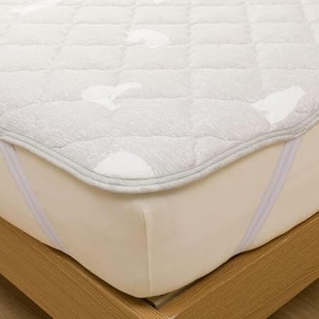 ・【一枚で長く使える】 ゴムバンド付きでずれにくく、両面使える敷きパッド。夏はもちもち「冷感」面、春・秋は凹凸さらさら「ワッフル」面
