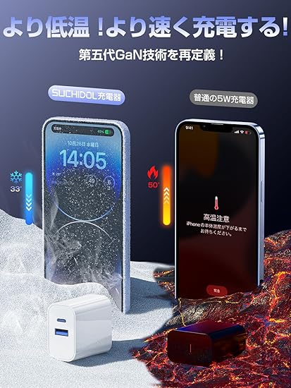 ・【多機種対応・絶対的な信頼感】タイプc 充電器はPower DeliveryやQuick Charge等の充電規格に対応します。iPhone全機種(15、15 Pro、15 Pro Max、14、14Pro、14ProMax、13、13Pro、12、12Pro、SE、11...)とAndroid機種(Galaxy、Xperia、Aquosなど)に全数対応。また、ipad、タブレット、モバイルバッテリー、イヤホン、ゲーム機など様々な機器の充電が可能。世界各国の電圧(AC 100-240V)に対応しているので海外旅行や出張に大活躍です。SUCHIDOLは長年、新技術・新製品を創造し続けて、最新のテクノロジーを採用しながら、納得の価格と安心のサービスで高品質のスマートデバイス周辺機器を世界100ヶ国以上で展開し、充電関連製品でトップの販売実績。弊社のusb c充電器は2年間のメーカー保証付き、もし何か質問・不明な点・不具合がございましたら、 いつでもご遠慮なく連絡ください。12時間以内に問題を解決します。お客様のことを一番に考えて、すべての声を大切に!今後も継続的にサービスを改善し、日々の改善を積み重ねていきます。