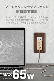 ・超急速充電が可能なPD(USBパワーデリバリー)に対応したコンセント充電器。新素材GaN(窒化ガリウム)を半導体(集積回路)に採用。従来のシリコン半導体に比べ低発熱と小型化を実現。最大出力65W給電でノートパソコン、スマホやタブレット、ゲーム機の充電に最適。Type-Cポート×2とUSB-Aポート×1を搭載。過電流・過電圧保護機能を搭載した安全設計。90°回転式プラグACプラグ採用で収納、持運びに便利。海外でも使用できるAC100V/240V対応。