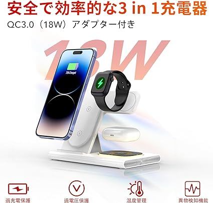 【最新型】HATALKIN 3in1ワイヤレス充電器 アップルウォッチ 充電 Compatible with iPhone15/14/13/