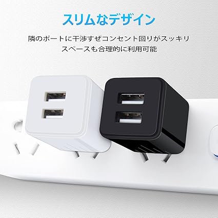 ・【利便性・使いやすさを追求】:片手で握れるまで小さいな小型USB ACアダプターです。2つのUSBポートから合計最大12Wの出力が可能です。携帯やタブレット端末などへ同時にフルスピード充電し充電時間も節約しました。USB電源アダプターは2ポートのコンパクトなデザインと洗練された外観、家庭用電源タップ使用時にスペースを合理的に利用することができます。