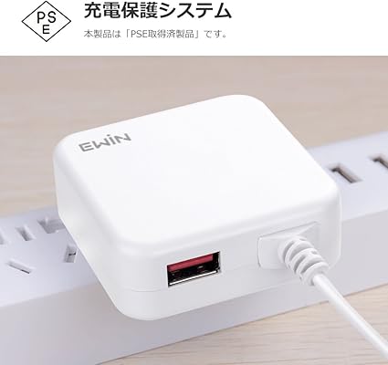 ・【PSE認証済正規品】Ewin USB充電器はPSE認証を取得し、安心お使いいただける正規品です。ビッグカメラなど日本有名なお店に高品質電子製品を提供する信頼性高い工場で生産・設計されます。また、何か不具合がある場合、お気軽に弊店までご連絡下さい。至急対応させて頂きます。