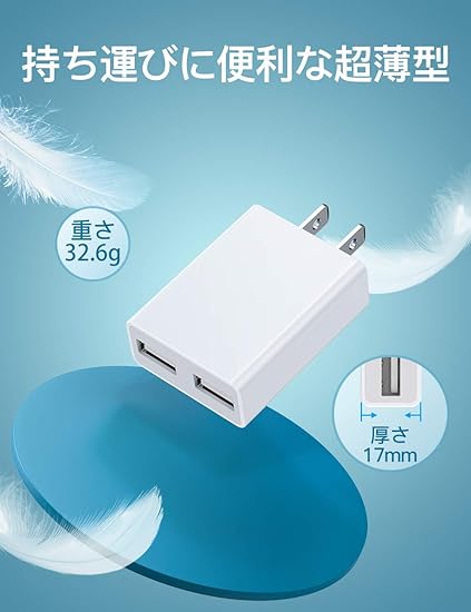 ・【超薄型なACアダプター】超薄型のデザインにより、2ポートを搭載します。洗練された外観から、スペースを合理的に利用できます。また、世界各国の電圧(AC 100-240V)に対応して、ご自宅のほか、海外旅行・出張でも安心してご利用いただけます。