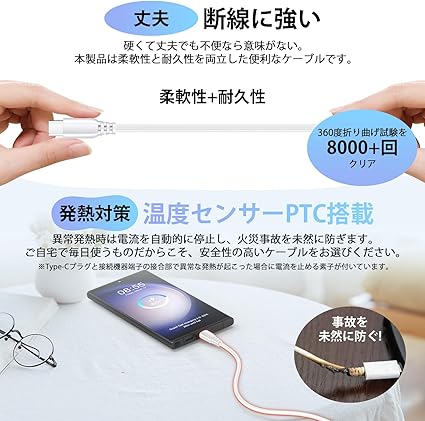 ・【幅広い対応機種】あらゆるType-C対応デバイスと互換性があります。Galaxy s23 S22 s21 tab s8 、zenfone 8、Aquos sense6、wish、sense4、Xperia 5iii、1iii、1iv、10iii、oppo reno5 a、reno7 a、a73、a54、pixel6、pixel 5a、pixel6、xiaomi、moto g31、Huawei p30等。USB-Cポートからスマートフォンやタブレット、ノートPC等のUSB-C機器にフルスピード充電が可能です。