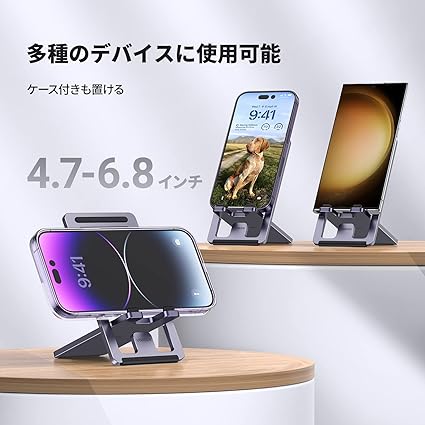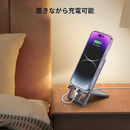 ・プレミアム品質:アルミ二ウム合金の本体は耐久性を持ちながら見た目もスタイリッシュでスマホとの相性満点。滑り止めのシリコンクッション付き、スマホとテーブルを守りながら優れた防滑性能を持ちます。