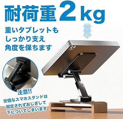 ・【耐荷重2KG】重いタブレットもしっかり支え、角度を保ちます。※注意 安価なスマホスタンドは調整部分が緩く、固定されずおじぎして下についてしまいます。【3種のシリコンパッドでブレ・転倒防止】スマホトレイ・フック部分・土台。 3か所で調整可。【スマホトレー】スマホにタッチしてもブレない。【フック部分】スマホを下からしっかり支える。【円型ベース裏】スマホスタンドがズレない。【1秒で2.2cmに収納可】バッグやポケットにサッと入れて、持ち運び快適。1秒で2.2cmに収納可。