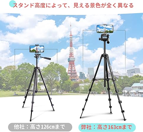 UBeesize 163cm三脚 スマホ/カメラ三脚/タブレット三脚/iPad三脚 Bluetoothリモコン ビデオカメラ 一眼フレ 3W