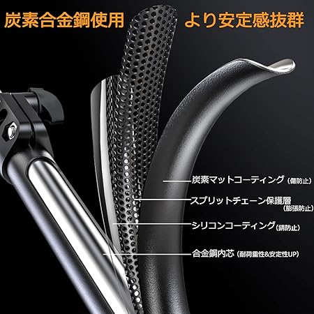 ・【太めで高級感ある炭素合金鋼製】三脚スタンドは他社と比べて太めで、高品質のマット仕上げの炭素合金鋼製です。耐磨耗性にも優れ、耐震性と安定感も兼ね備えています。床面を傷つけないようプラスチック足も採用しています。