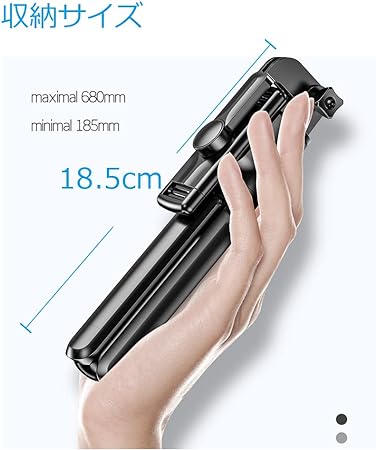 ・【超コンパクト軽量で、頑丈】コンパクトなサイズ、軽量化や頑丈化のABSとSUS素材、すごく使いやすいスマホ自撮り棒です。最短サイズはわずか18.5cm、重さは約130gしかありません。ポケット、鞄の中でも邪魔になりません。