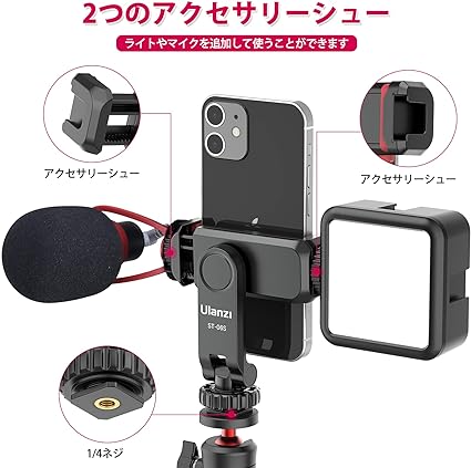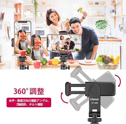 新版 Ulanzi カメラスマホモニターマウント 360°回転 角度調整 スマホホルダー アクセサリーシュー付き 垂直ブラケット 1/4ネジ