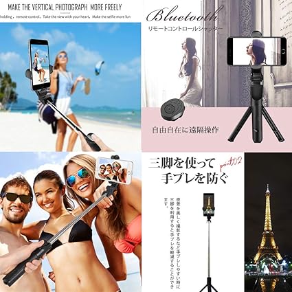 ・【三脚一脚兼用デザイン】手持ちの使用だけではなく、Bluetoothリモコンと三脚一体の高級設計、Bluetoothリモコンは本体から取り外し、遠距離でコントロールできます。三脚スタンド付きで平面に置き、人に写真を頼まなくても、自由自在に友たちや家族全員の記念写真を撮影できます。