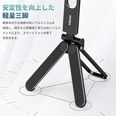 ・【特別なデザイン・折りたたみ式発売】Ulanzi MA26 スマホ三脚 簡単に拡張したり折りたたんだりできるので、動画視聴のパートナーとしても、ビデオブログ用の手持ちVLOG三脚としても使えます。軽量ながらも強度の高いアルミニウムを採用し、頑丈な三脚構造と滑り止めシリコンパッドにより、スマートフォンの落下を防ぎます。