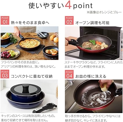 こびりつきにくく丈夫で長持ちします。鍛造プレスで軽くて熱変形にも強いフライパンです。取手がとれるので調理・食卓・保存をこれ一台ででき、収納も簡単です。【セット内容】12点セット:フライパン26cm・フライパン20cm・なべ20cm・なべ16cm・炒めなべ26cm・シリコン縁ガラスふた26cm・シリコン縁ガラスふた20cm・シリコン縁ガラスふた16cm・PEシールふた20cm・PEシールふた16cm・マルチハンドル2本※パッケージ変更につき、旧パッケージと新パッケージの在庫が混同しております。旧パッケージは「耐摩耗性試験30万回クリア」の記載がございますが、商品は「耐摩耗性試験50万回クリア」の品質ですのでご安心ください。