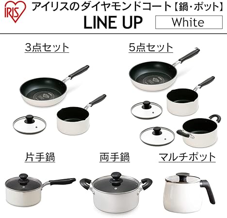 アイリスオーヤマ フライパン 鍋 フライパンセット 5点 片手鍋 両手鍋 蓋つき ふた付き ガラス蓋 フタ ダイヤモンドコート セット 一人