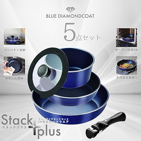 パール金属 スタックプラス ブルーダイヤモンドコートIH対応クックウェア5点セットA ネイビー HB-5628