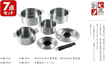 よこやま ハンドル着脱 鍋セット IH・ガス兼用 創燕 日本製 4点セット 14cm・16cm・18cm・20cm SE-28