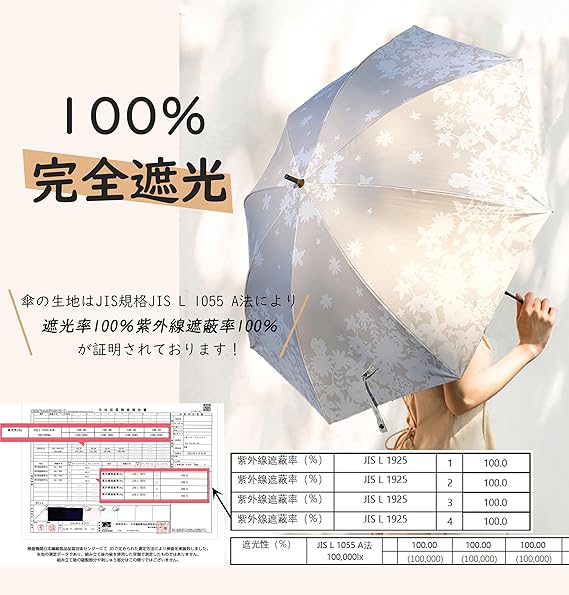 ・【サイズ 】[親骨の長さ]約50cm [直径]約86cm [長さ]約68cm 本体重量 :254g 遮光率:99.9% UV遮蔽率:99.9% UPF評価:UPF50+ ※各サイズ/重量は製品によって多少の誤差がある場合があります。