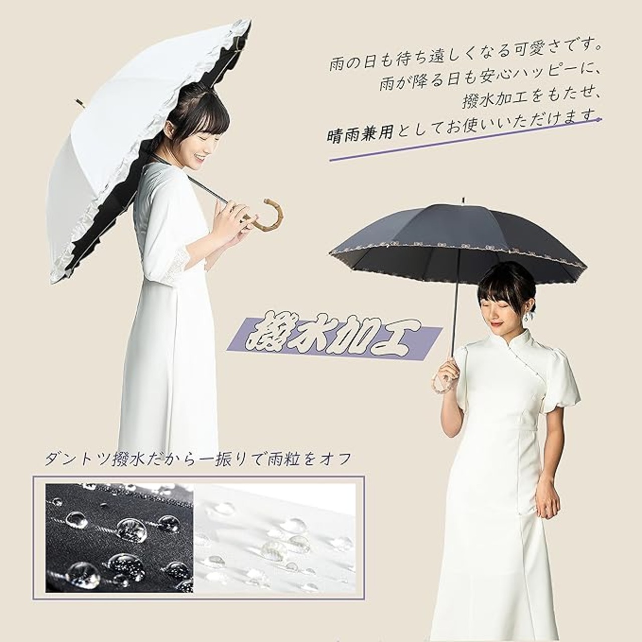 ・【晴雨兼用】雨が降る日も安心ハッピーに♪撥水加工をもたせ、晴雨兼用としてお使いいただけます。日傘としての十分な機能に加え、210T高密度キャロム布を使用しておりテフロン加工を施しているため、普通の傘より撥水性が優れております、雨が降ったら傘として・晴れの日は日傘として使える、便利な晴雨兼用傘です!