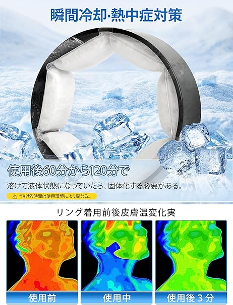 ・【PCM素材&一番優しい24度】PCMこの素材は凝固するのが早く、融解するのが遅い特性があります。24度のアイスネックリングは僅か30%時間帯で結露する可能性があり、適度な涼しさです。さらに、本品は結露防止加工をしていますので、ほとんど結露しません。24℃の本製品は最高の冷却体験をもたらします。